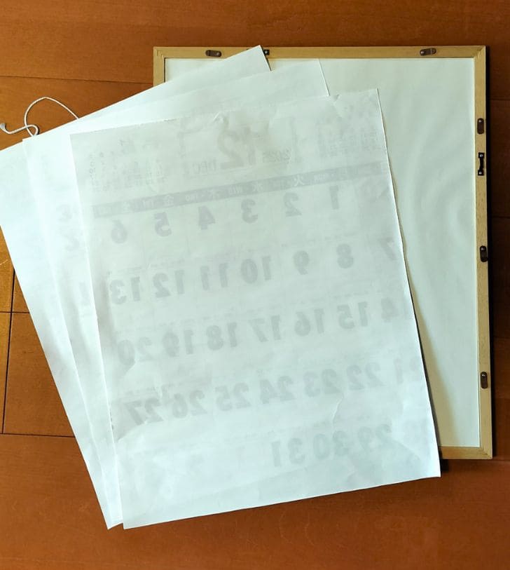 厚紙(カレンダーを3枚)を入れて